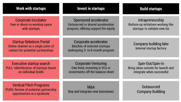 At The Heart, a European center for corporate-startup collaboration, we have identified the following ways of engagement (see Figure 2). The details of each strategy are described below.